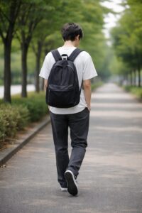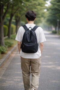構図や距離感が非常に安定しています。「散歩している人」という言葉をそのまま素直に受け取り、公園の遊歩道を歩く落ち着いた画像が出ました。ブレが少なく、説明用やブログの挿絵として最も使いやすい組み合わせです。